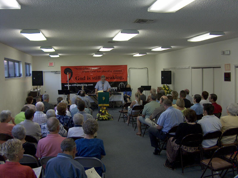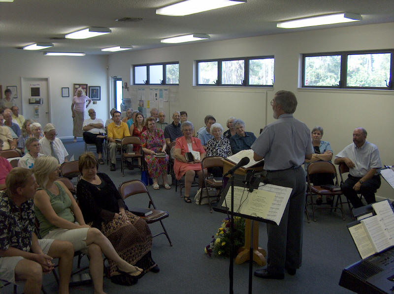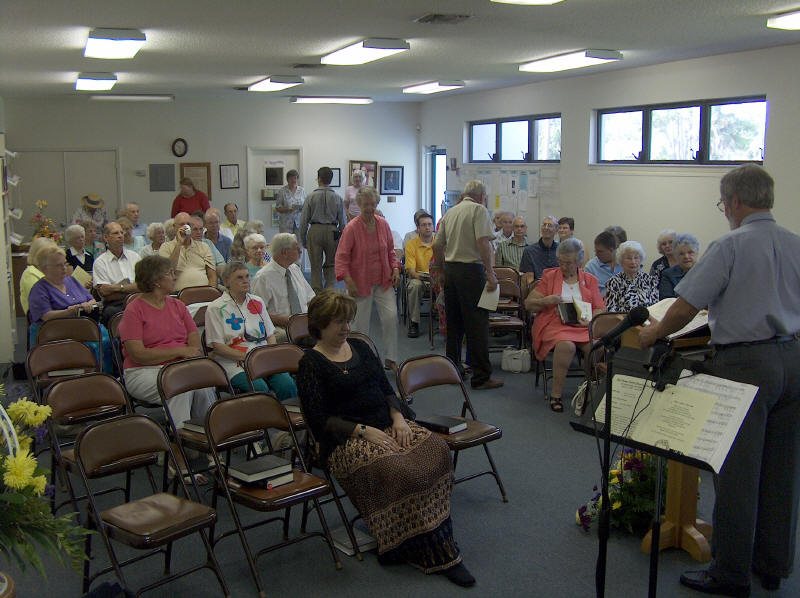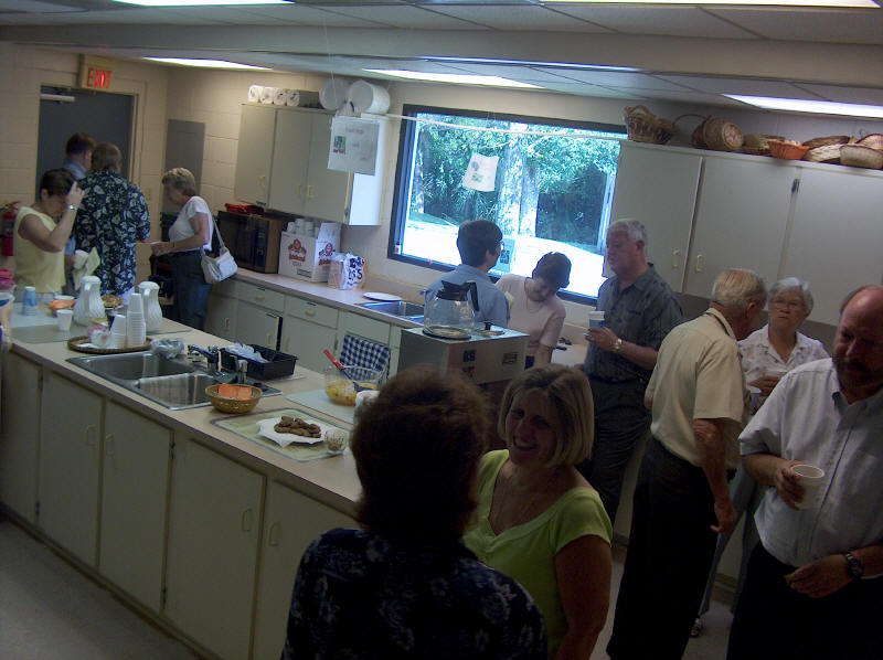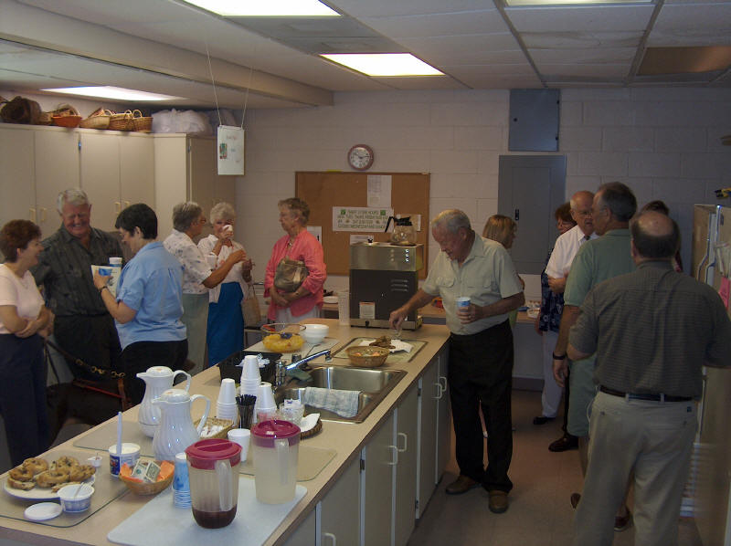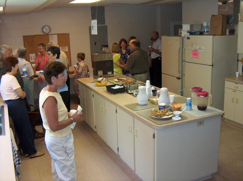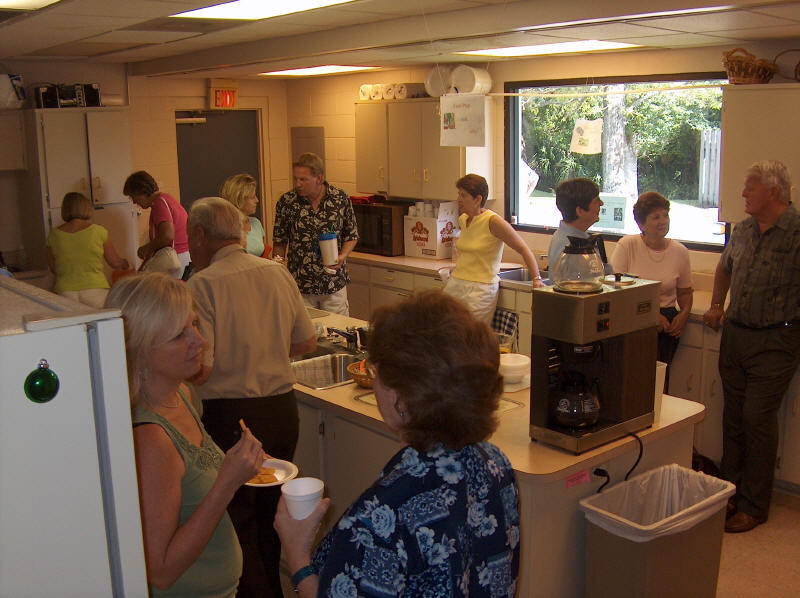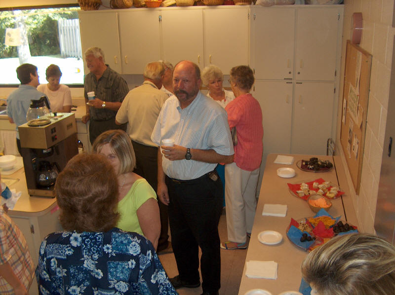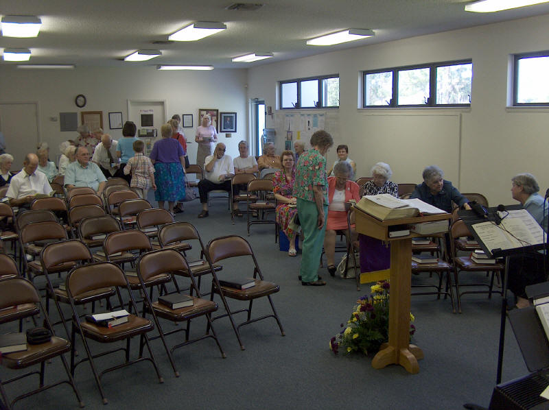 When our sanctuary air conditioning failed during the 90 degree heat of summer, the church membership rose to the occasion. While waiting for the repairs, church services were held in the Jim Reed Building. It was a full house and truly the feeling of a strong church at work was felt by all. |