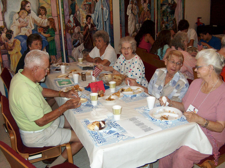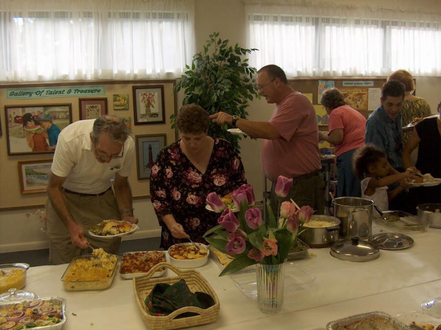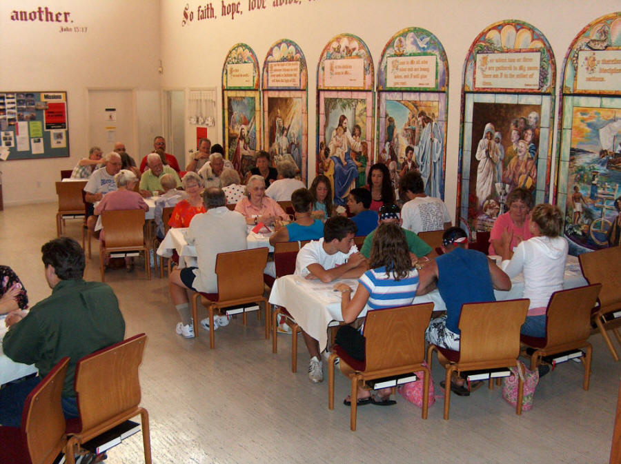 74 Youth and adult leaders came to Florida in July as their mission to help hurricane victims still needing assistance to recover from damage. This inspiring group stayed at several local churches and homes. POUCC had the privilege of hosting them for dinner in the church sanctuary. What a meal! What a Success! What a Joy! |