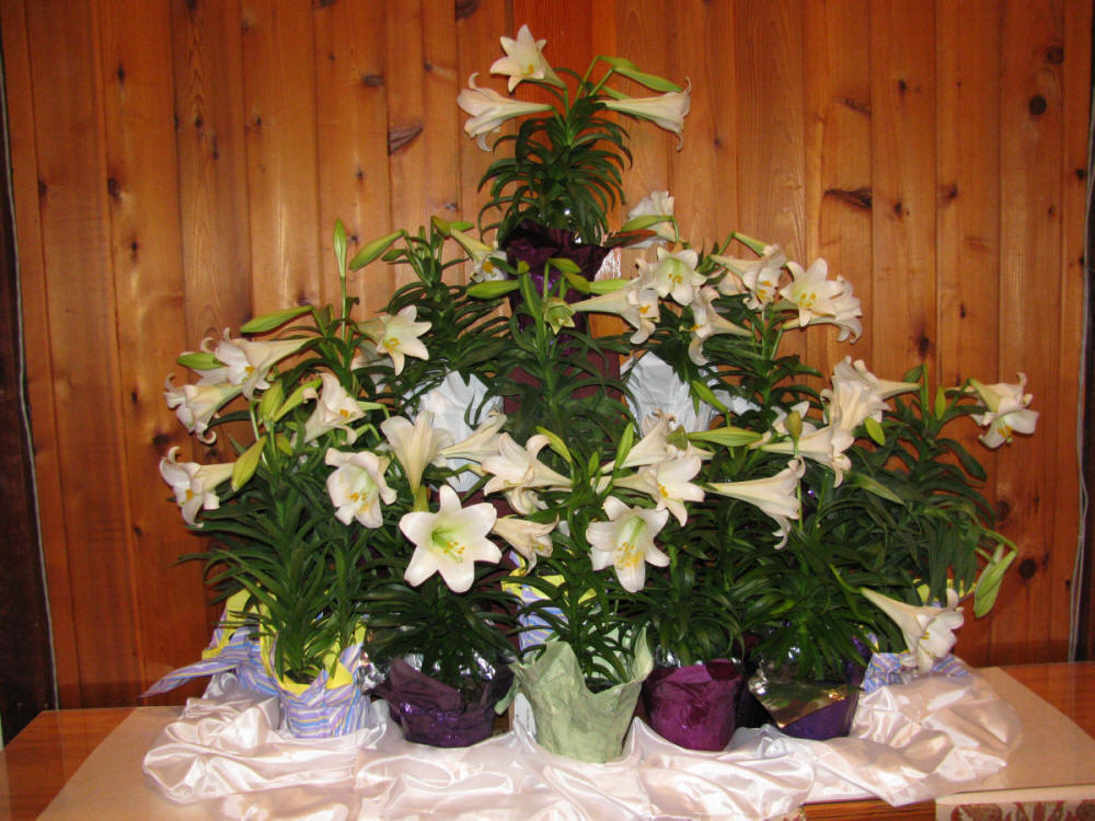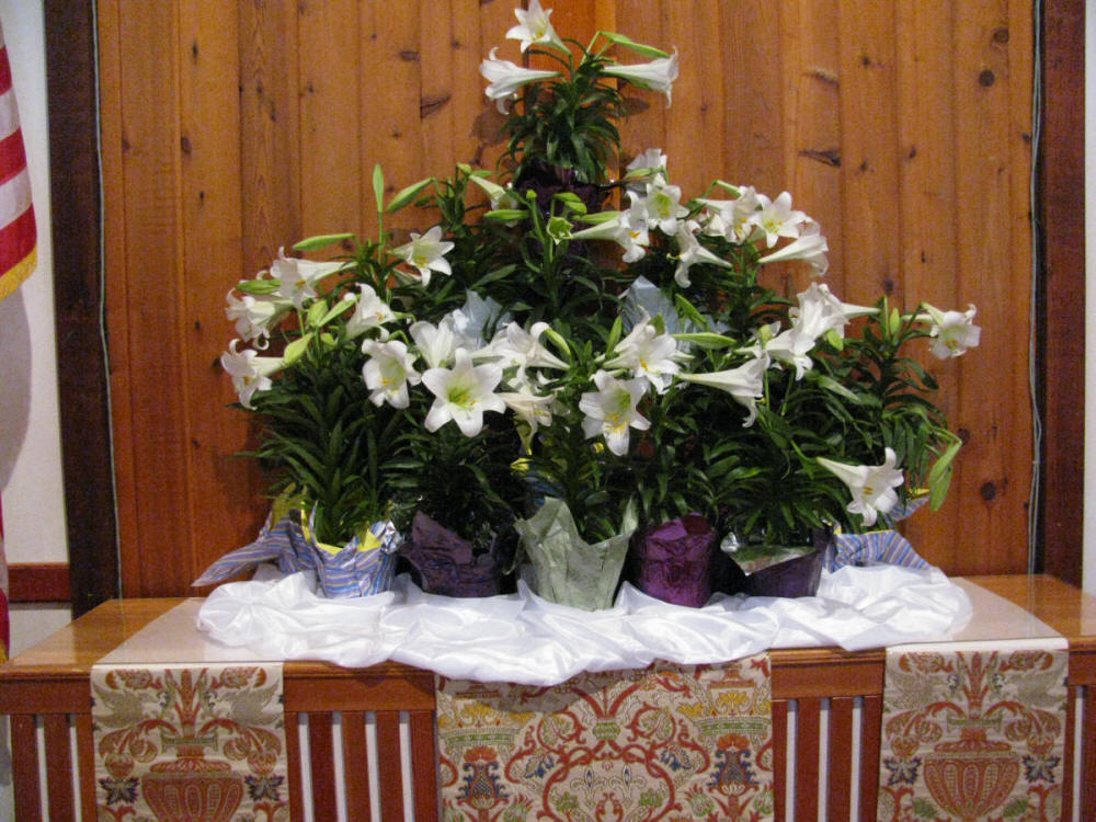 Back at the church the beautiful display of Lilies awaits the 10:30 Easter Service. |