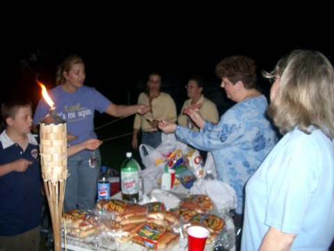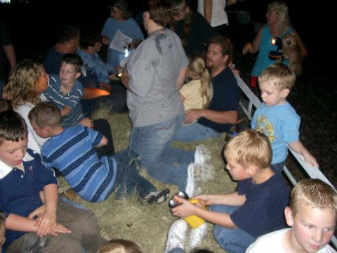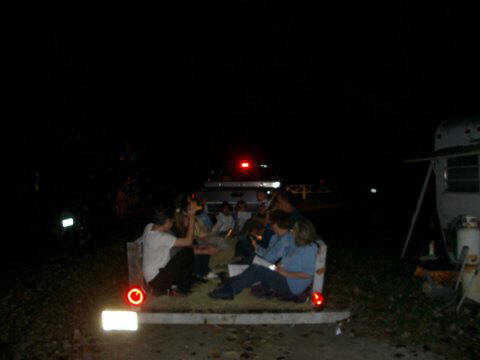 This is the 2nd year that we all traveled to Shenadoah Farms on Old Tomoka Road and had a great time riding a hay wagon. The campfire made for a special atmosphere giving the hot dogs and marshmallows that good outdoor cooked taste. Everyone young in age and young "at heart" had a great time singing, talking and eating. The hayride was under a very bright moon which gave us an enjoyable atmosphere as we rode through the farm's back woods.